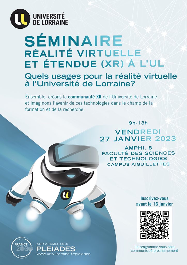 [PLEIADES] Séminaire dédié à la réalité virtuelle et étendue à l'UL